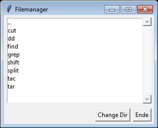Liste der Dateien und Ordnern Siehe Beispiel "Fielmanager1.py" |