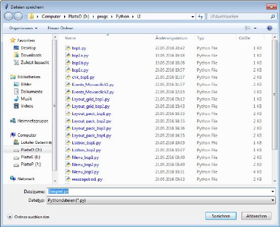 filename = filedialog.asksaveasfilename(initialfile="Beispiel.py", title="Dateien speichern", initialdir="D:\\progs\\Python\\UI\\", filetypes=( ("Pythondateien",".py" ) ,("Alle Dateien","*.*" ) ) )