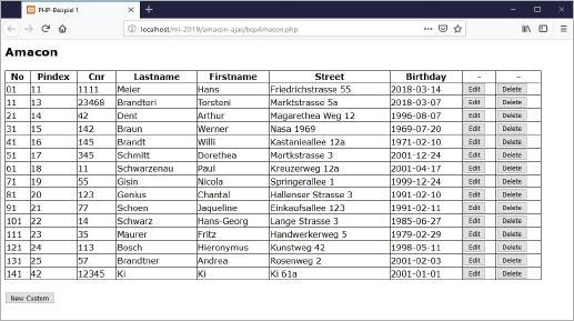 [ {"pindex":11,"cnr":1111,"lastname":"Meier","firstname":"Hans","street":"Friedrichstrasse 55","birthday":"2018-03-14"}, {"pindex":13,"cnr":23468,"lastname":"Brandteri","firstname":"Torsteni","street":"Marktstrasse 5a","birthday":"2018-03-07"}, {"pindex":14,"cnr":42,"lastname":"Dent","firstname":"Arthur","street":"Magarethea Weg 12","birthday":"1996-08-07"}, {"pindex":15,"cnr":142,"lastname":"Braun","firstname":"Werner","street":"Nasa 1969","birthday":"1969-07-20"}, {"pindex":16,"cnr":145,"lastname":"Brandt","firstname":"Willi","street":"Kastanieallee 12a","birthday":"1971-02-10"}, {"pindex":17,"cnr":345,"lastname":"Schmitt","firstname":"Dorethea","street":"Martkstrasse 3","birthday":"2001-12-24"}, {"pindex":18,"cnr":11,"lastname":"Schwarzenau","firstname":"Paul","street":"Kreuzerweg 12a","birthday":"2001-04-17"}, {"pindex":19,"cnr":55,"lastname":"Gisin","firstname":"Nicola","street":"Springerallee 1","birthday":"1999-12-24"}, {"pindex":20,"cnr":123,"lastname":"Genius","firstname":"Chantal","street":"Hallenser Strasse 3","birthday":"1991-02-10"}, {"pindex":21,"cnr":77,"lastname":"Schoen","firstname":"Jaqueline","street":"Einkaufsallee 123","birthday":"1991-02-11"}, {"pindex":22,"cnr":14,"lastname":"Schwarz","firstname":"Hans-Georg","street":"Lange Strasse 3","birthday":"1985-06-27"}, {"pindex":23,"cnr":35,"lastname":"Maurer","firstname":"Fritz","street":"Handwerkerweg 5","birthday":"1979-02-29"}, {"pindex":24,"cnr":113,"lastname":"Bosch","firstname":"Hieronymus","street":"Kunstweg 42","birthday":"1998-05-11"}, {"pindex":25,"cnr":57,"lastname":"Brandtner","firstname":"Andrea","street":"Rosenweg 2","birthday":"2001-02-03"}, {"pindex":42,"cnr":12345,"lastname":"Ki","firstname":"Ki","street":"Ki 61a","birthday":"2001-01-01"} ]