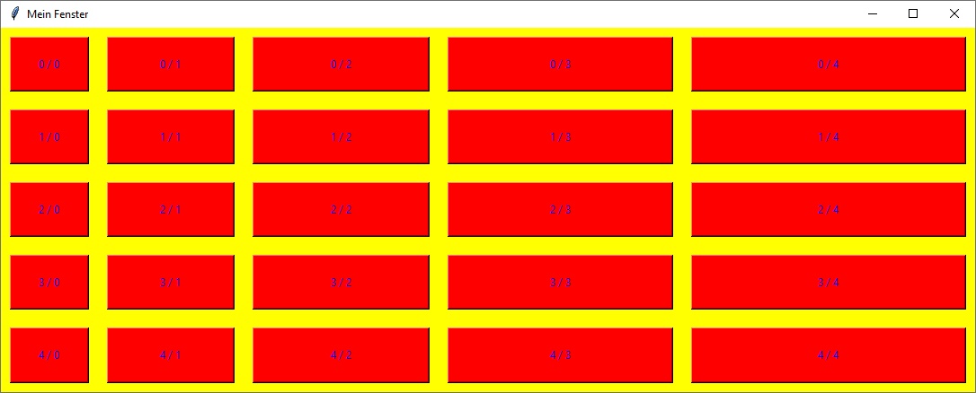 root.rowconfigure(i, weight=i+1) # setzt die 1. Spalte auf fill