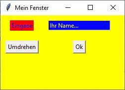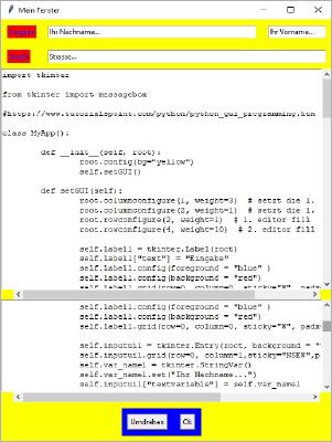 root = tkinter.Tk() root.title("Mein Fenster") root.geometry("300x300") app = MyApp(root) root.mainloop()