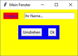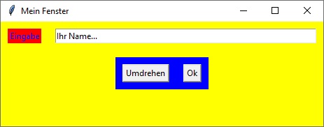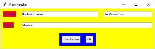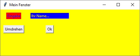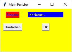 root = tkinter.Tk() root.title("Mein Fenster") root.geometry("300x300") app = MyApp(root) root.mainloop()