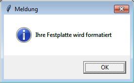 messagebox.showinfo( "Meldung", "Ihre Festplatte wird formatiert",icon='info')