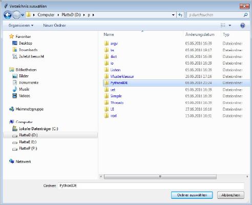 filename = filedialog.askdirectory(title="Verzeichnis auswählen", initialdir="D:\\progs\\Python" ) if filename: __messagebox.showinfo("Auswahl",filename) else: __messagebox.showinfo("Auswahl","Abbruch")